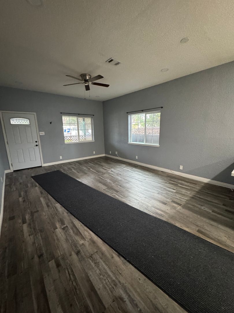 This newly remodeled house is available now. With 3 bed and two bathes, laminate flooring throughout, fresh paint, granite counters, spacious kitchen and living room. The appliances are newer and include a stackable washer and dryer. This property has a large fenced back yard area, two additional storage sheds, with covered deck and additional BBQ area, small front yard with screened covered porch. Yard maintenance is responsibility of tenant. A pet may be allowed upon approval and with additional fees. This property does benefit from solar.