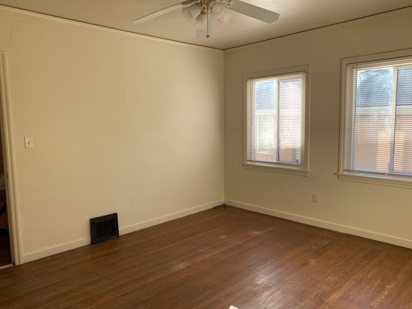 This vintage property has original hardwood floors, original cabinetry in kitchen and bathroom. The kitchen has a stove and refrigerator with a small attached dining nook. There is a small room that could be used as an office with a laundry hookup. The separate bedroom has the bathroom attached. This unit has central heat and air, only street parking, and this unit has several built in cabinets for storage. Sorry no pets, no smoking. Rent includes water/sewer and garbage.