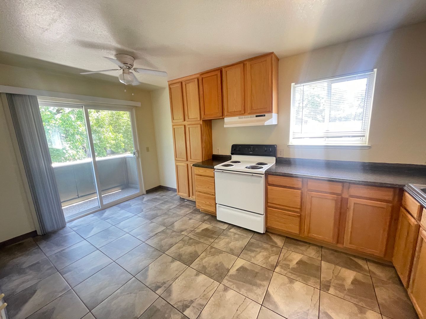 This small apartment complex has one downstairs unit coming available. This unit has a spacious kitchen with lots of storage, eat-in area, lots of natural light, open living room with opening into the kitchen. The two bedrooms have natural light and the master has a walk in closet with slider to a back patio area. Sorry, no pets, no smoking.Rent includes water/sewer/garbage, yard and pest service.