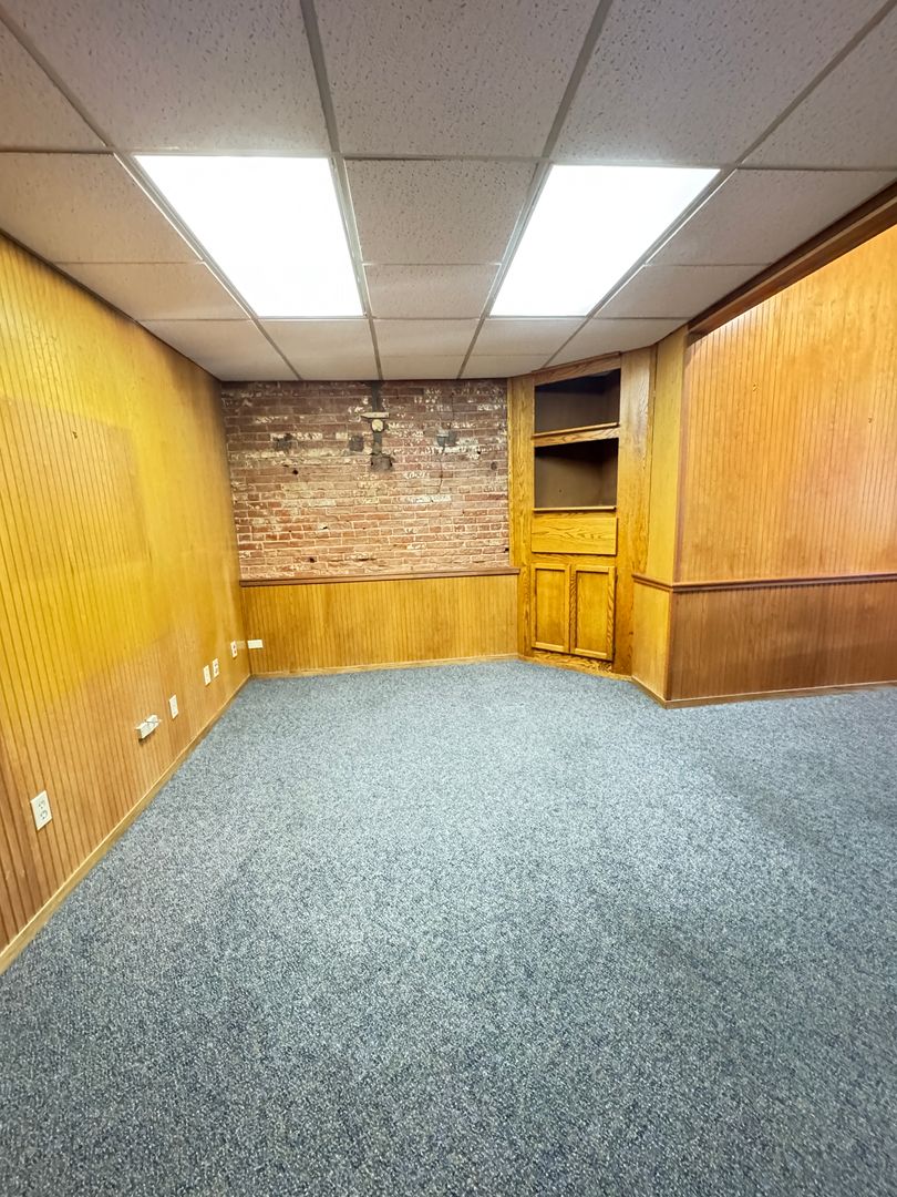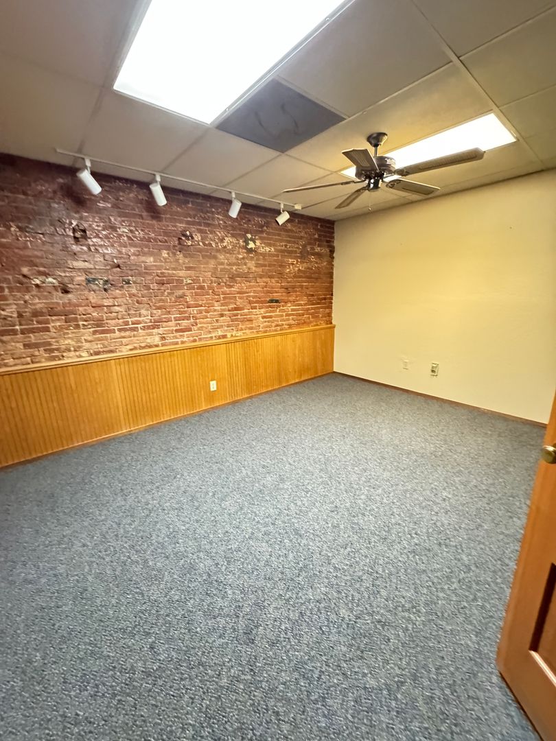 This historic building has an office space available now. This space has spacious rooms with a couple private offices, break room, built in shelves, bathroom.